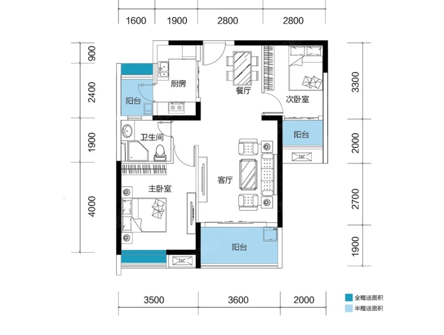 建华观园Ai-1 两室两厅一卫88㎡-2室2厅1卫-88.0㎡