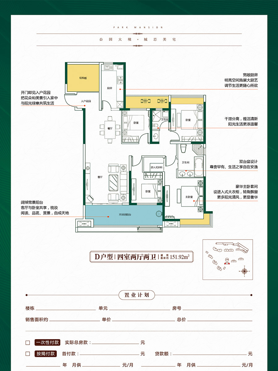 21、37、38号楼D户型-4室2厅2卫-151.92㎡