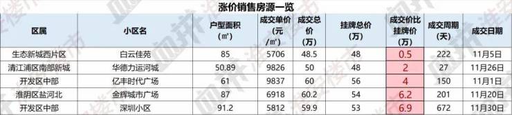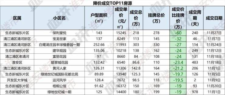 当然在11月的淮安二手房成交记录中,降价超20万的房东也是大有人在。