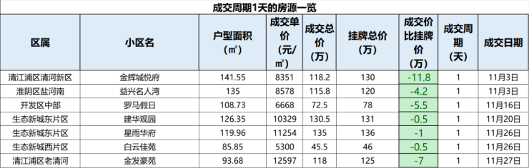 以下为11月贝壳平台淮安二手房成交详情↓↓↓