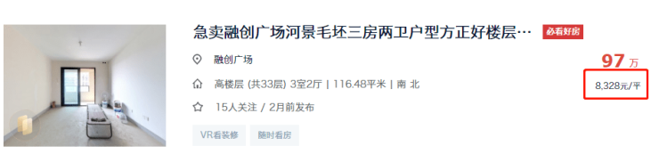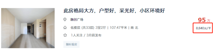 不仅是这套房源,这几个月融创广场还挂出了几套单价在8千多的房源。