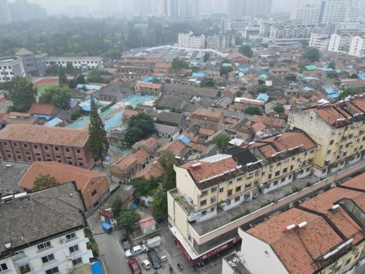 从空中也可以俯瞰到,长达六七十年的梧桐树基本得以保留。