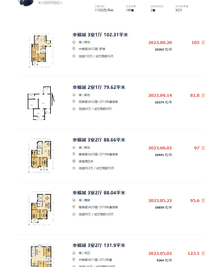 据梳理,该小区目前在贝壳平台共有188套挂牌,在近90天共有2套成交,带看更是超过了90次,从房源售价看,单价普遍10000+/㎡。