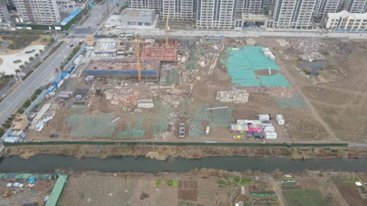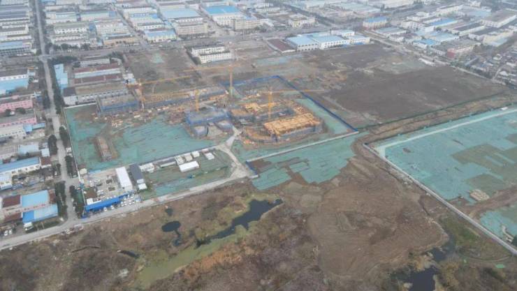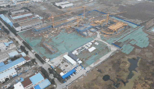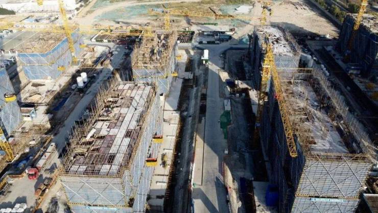 从航拍来看,地块中已有多栋教学楼出地面,可以看到很多工人在内部施工。