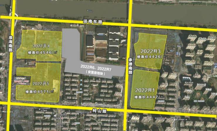 其中,淮自然(开)挂2022第3号地块位于承德南路东侧、运河南路南侧,宗地面积49433.6㎡,拿地时间为2022年11月11日,楼面价4426/㎡。