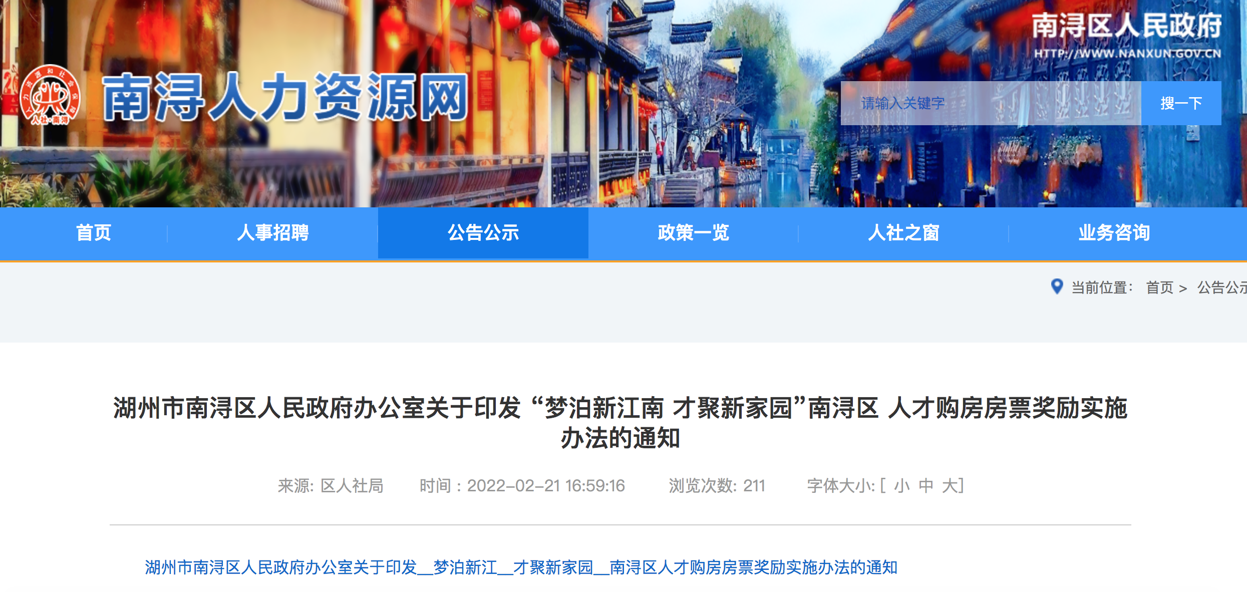 湖州南浔人才购房奖励办法:购首套房至少给予7万元房票奖励