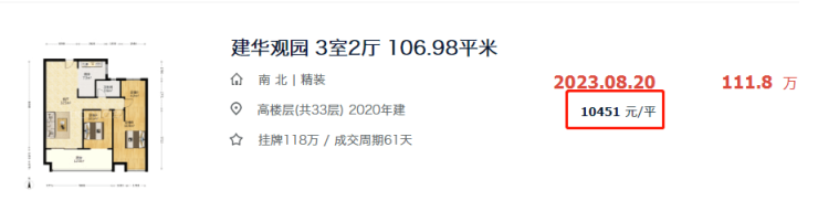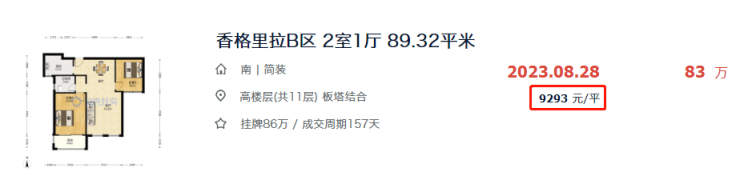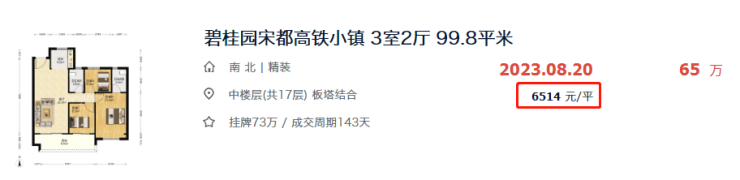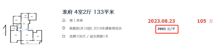 小区最新成交了一套建面约133㎡的高层房源,成交单价只有7895元/㎡,刷新了小区的最低成交价!