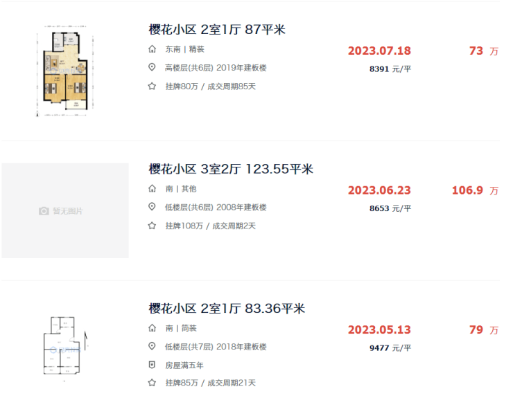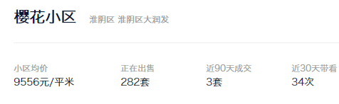2.还有樱花小区,怎么说也是淮阴区盐河南的二手房小区,小区挂牌单价也要9556元/㎡,成交价基本也都在8千以上。