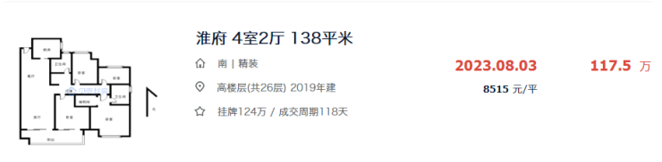 同样是在本月初,淮府同类型的大面积成交价还要8500元/㎡左右,然而更低的房源很快到来。