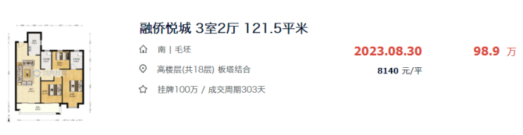 截止目前,该套房源也成为了运河风华成交价最低的二手房。