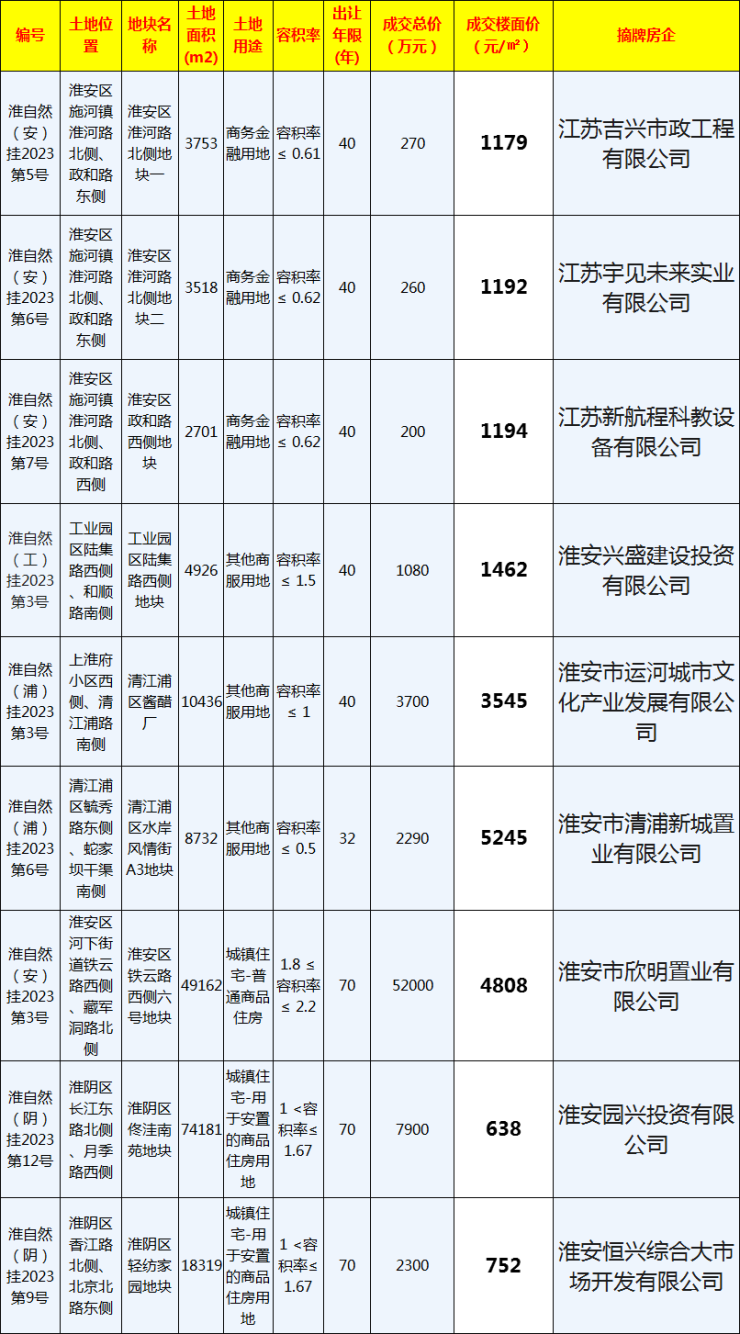 民企房企再入场,文锦城五期敲定!刚刚,淮安9宗地块成交!