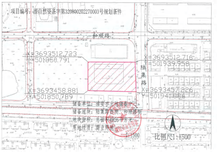 1.淮自然(安)挂2023第5号地块(淮安区淮河路北侧地块一)。