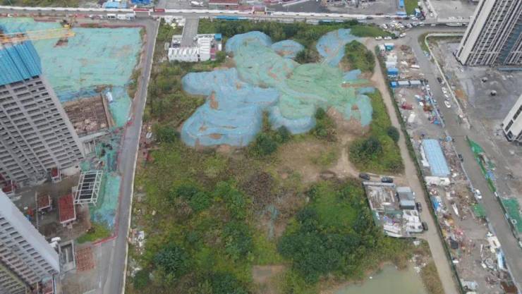 而且地块北侧有大量的土堆,并且覆盖了防尘网,很显然此前进行了大规模的挖掘。