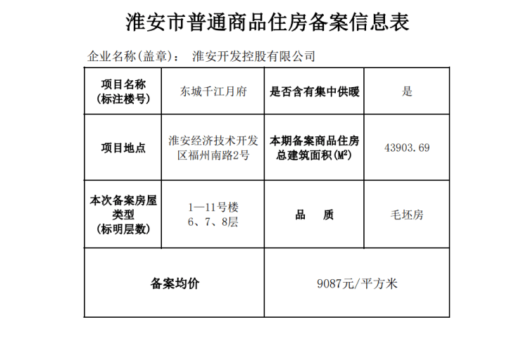 近日,淮安市发改委网站公示了开发区中部纯新盘——东城千江月项目的最新备案价。