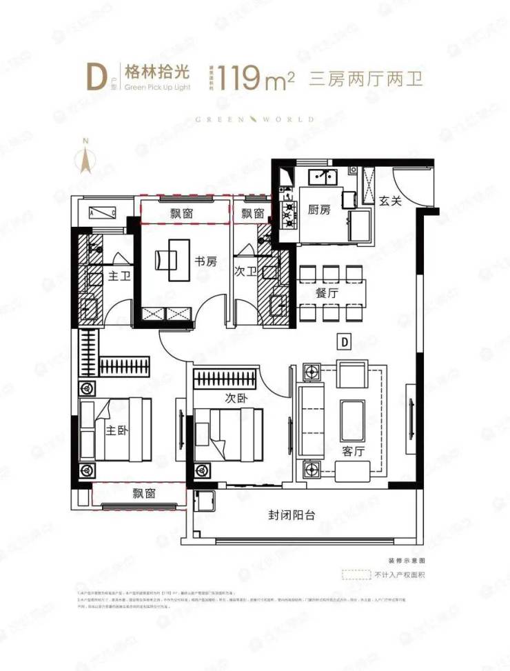 ▲格林世界建筑面积约119㎡户型图