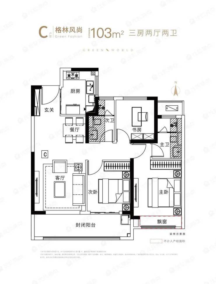▲格林世界建筑面积约103㎡户型图