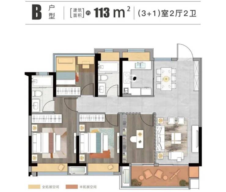 ▲淮安富康城二期建面约113㎡户型图