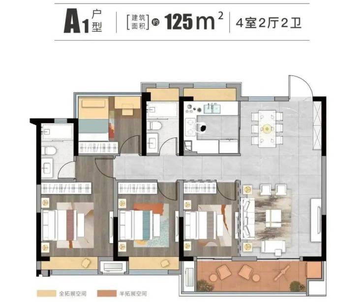 ▲淮安富康城二期建面约125㎡户型图