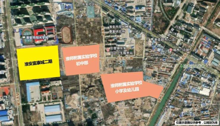 不仅商业配套富康城·铂悦汇已经开始运营,而且教育配套淮师附属实验学校的初中部也迎来封顶。