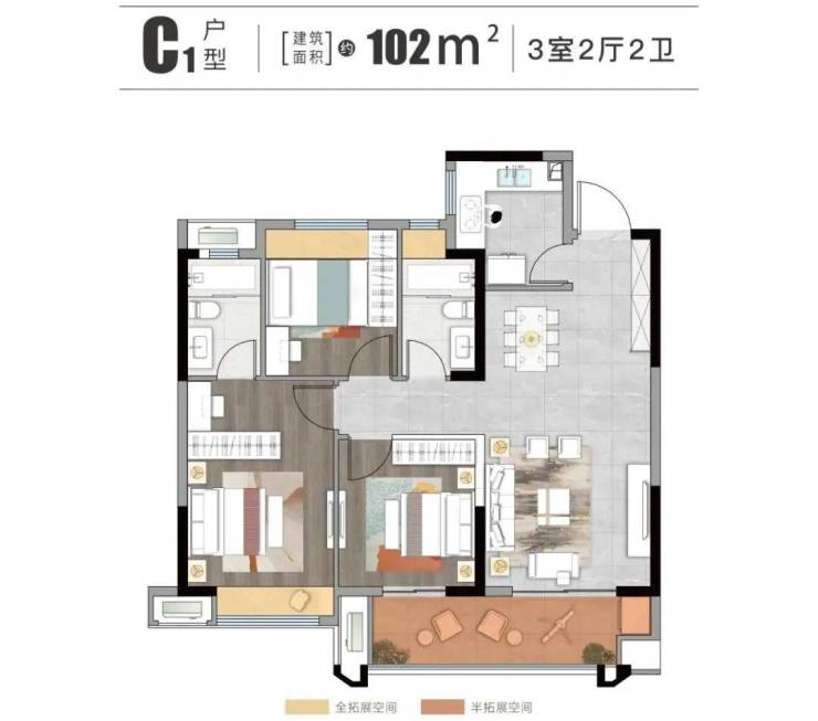 在户型方面,102-125㎡的首开产品,全系双卫设计,十分注重都空间使用性的把控。