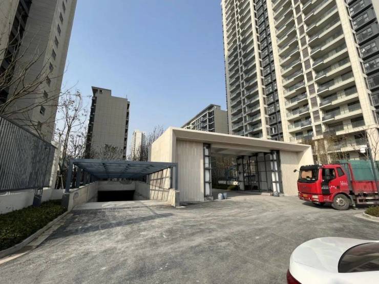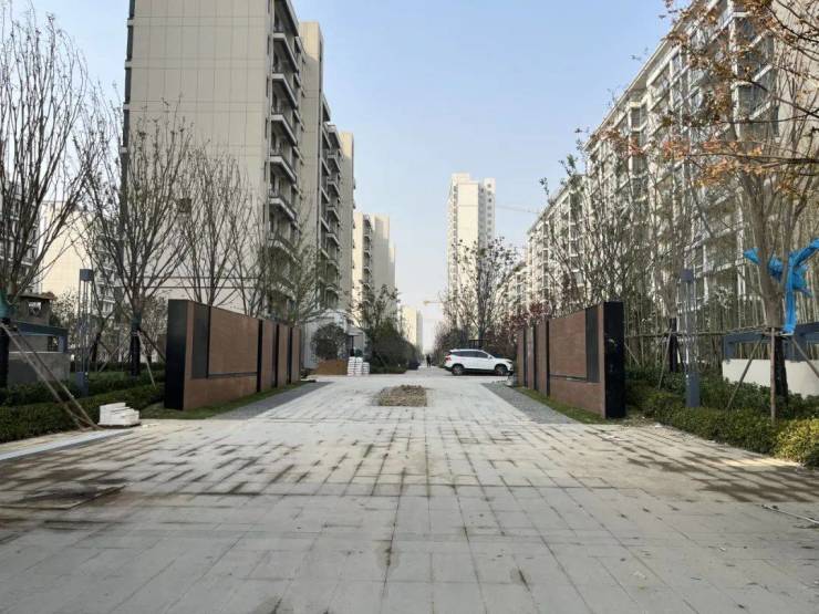 就连小区的正大门目前也是未完工的状态,现在看起来略显荒凉。