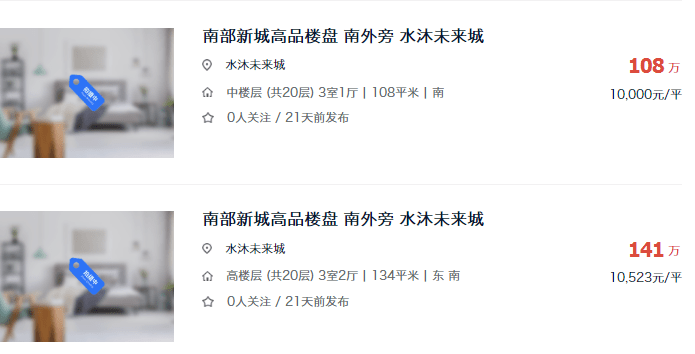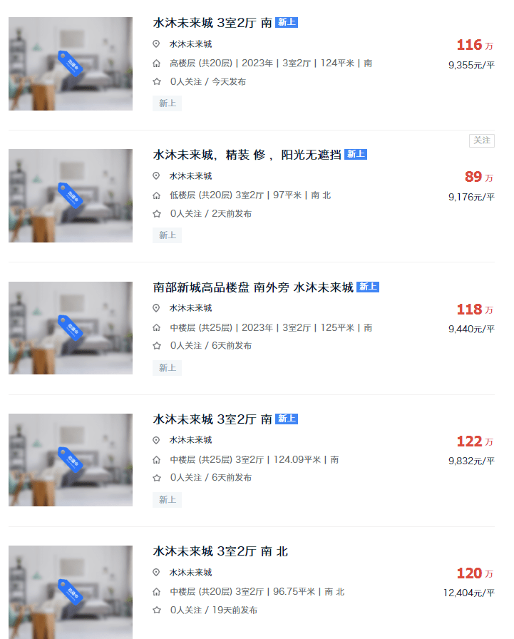 不难发现在南部新城板块中,比水沐未来城的次新房更具性价比的二手房或者新房有很多。