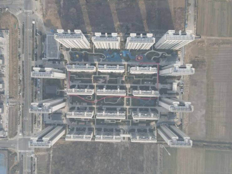 由于小区整体未完工,因此现在还不能评价该小区的交付质量,大家可以先从航拍来看一下水沐未来城的颜值。