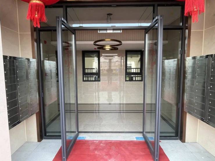 对比前段时间交付的大学城水沐韶华项目,差距显而易见,这是水沐韶华的高层和洋房的入户单元门↓。