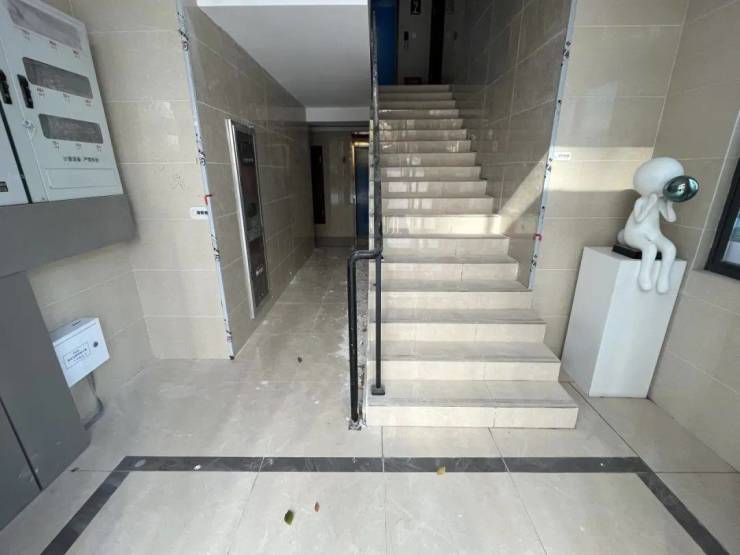 水沐未来城洋房入户单元门↓进入单元门后,右侧是楼梯,左侧是走道,入户大堂的空间只有几平米…