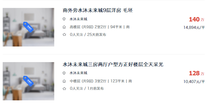 目前水沐未来城还没有成交的二手房,不过从这14套房源的挂价来看,还是相对偏高的,尽管不少房东也在亏本出售,但是这个单价还是偏高的。