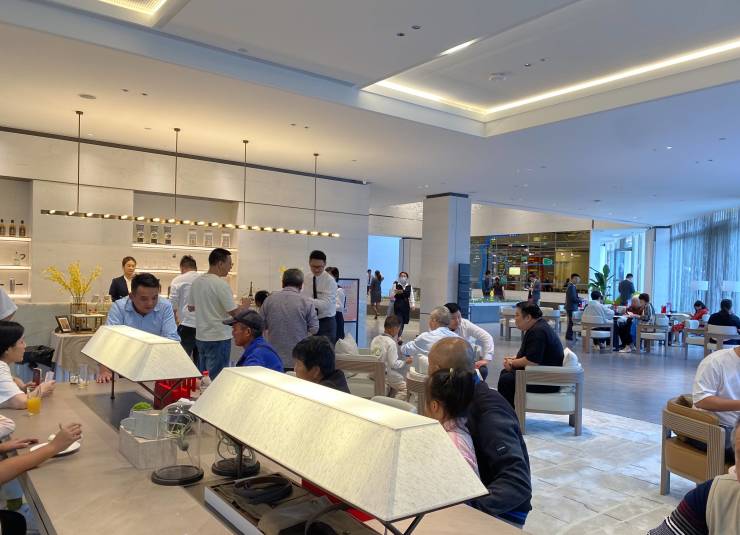 长假期间,澎湃新闻实地走访了多个楼盘,多个项目售楼处及样板间人头攒动,也有项目售楼处趁着中秋及国庆举办双节活动,通过抽奖等方式吸引客户。