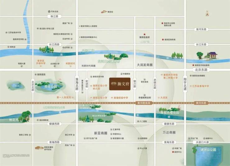 医疗上,淮阴区盐河南板块的重量级医疗配套——淮安市第一人民医院就位于该项目的西侧约1公里。