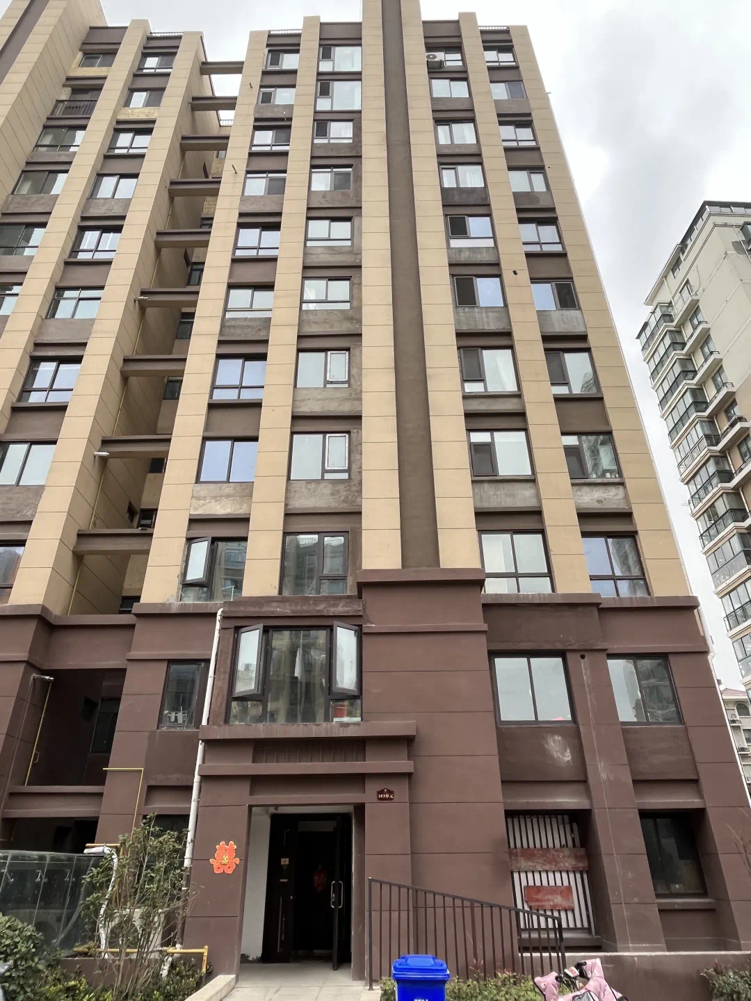 为什么楼栋的外立面上有这么多破损修补的痕迹?可以明显看到墙面是非常的不整洁,露出了水泥墙面!