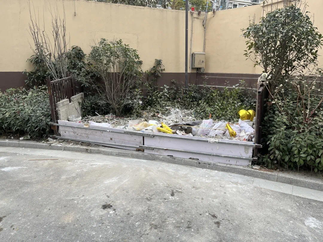 小区西南角的绿化花园竟然被改成了一个垃圾站。