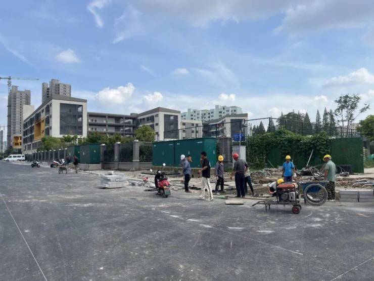 并且该学校北侧正门前的道路,正在紧锣密鼓的铺设中,赶在开学前完工,方便家长来回接送孩子。