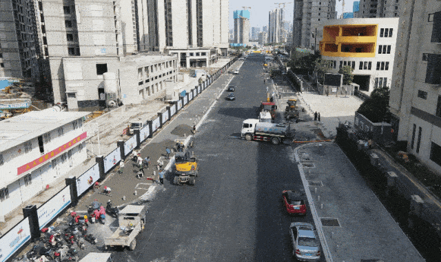 目前施工人员正在进行最后收尾工作,比如人行道铺设、路灯、绿化、设置减速带等等。