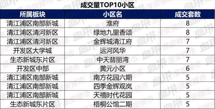 除此之外,开发区中部、清江浦区水渡口板块以及清江浦区南部新城板块的单月成交数据也纷纷突破了30套。
