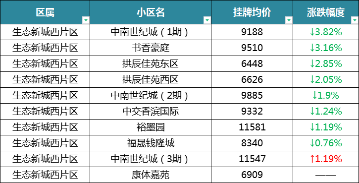 还是先来说生态新城,关注度较高,最能体现二手房市场的真实行情,从统计结果来看,降价的较多。