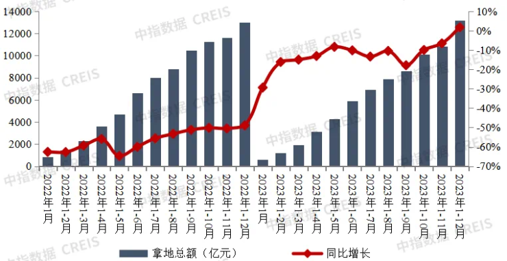 拿地总额同比微增1.7%,增速转正