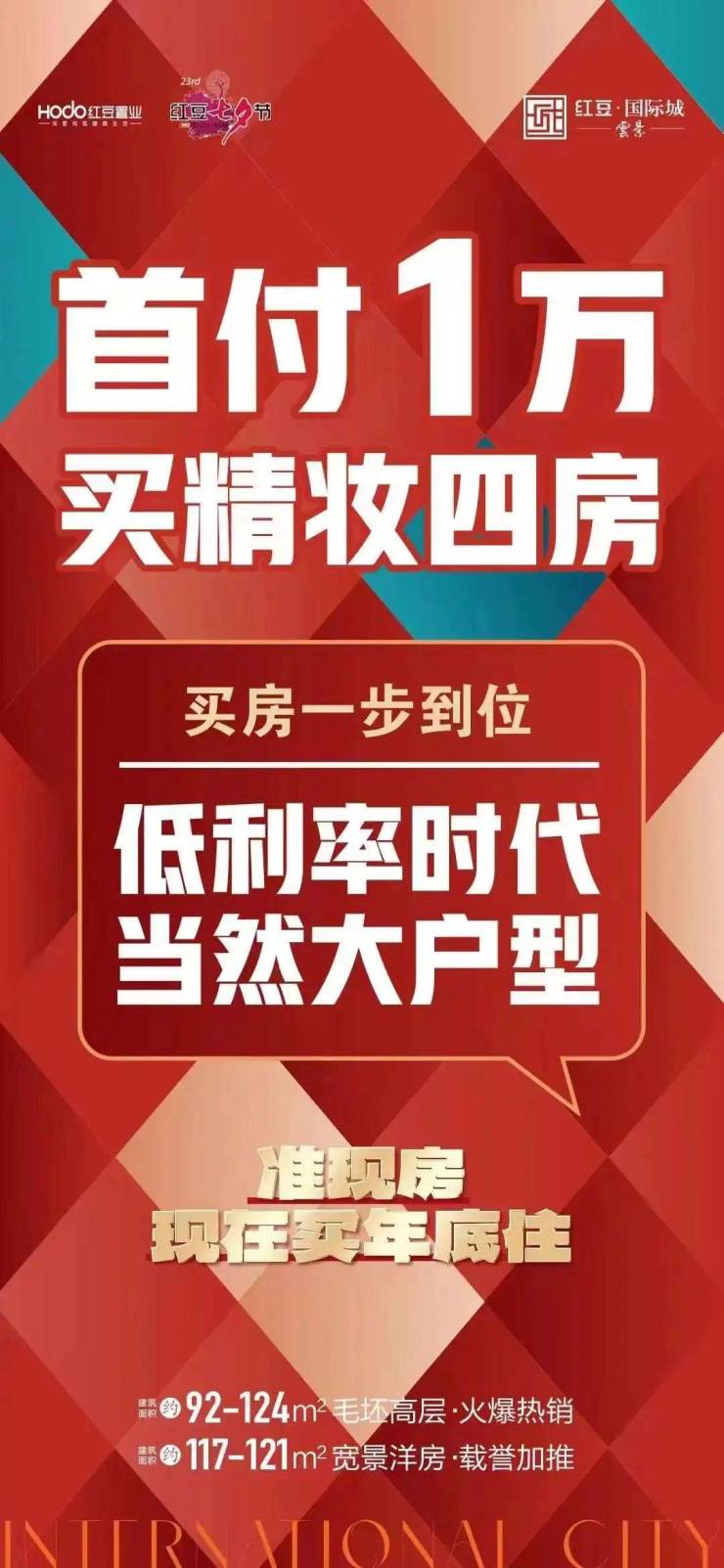 还有大家熟悉的红豆国际城,在前段时间热度颇高,目前项目低首付活动还在进行,首付1万就可以买精妆四房。