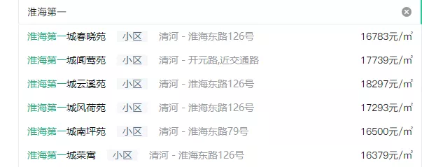 这些小区的挂牌价都在16500元/㎡以上,较高的淮海排名前列城云溪苑挂牌均价达到了18297元/㎡。
