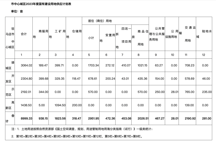3月9日,河南省驻马店市发布《关于印发驻马店市中心城区2023年度国有建设用地供应计划的通知》。