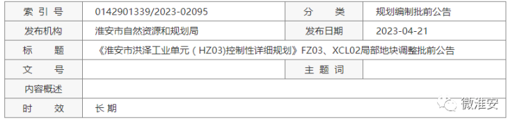 为加快推进签约项目规划建设,盘活存量,拟对《淮安市洪泽工业单元(HZ03)控制性详细规划》FZ03、XCL02局部地块调整。