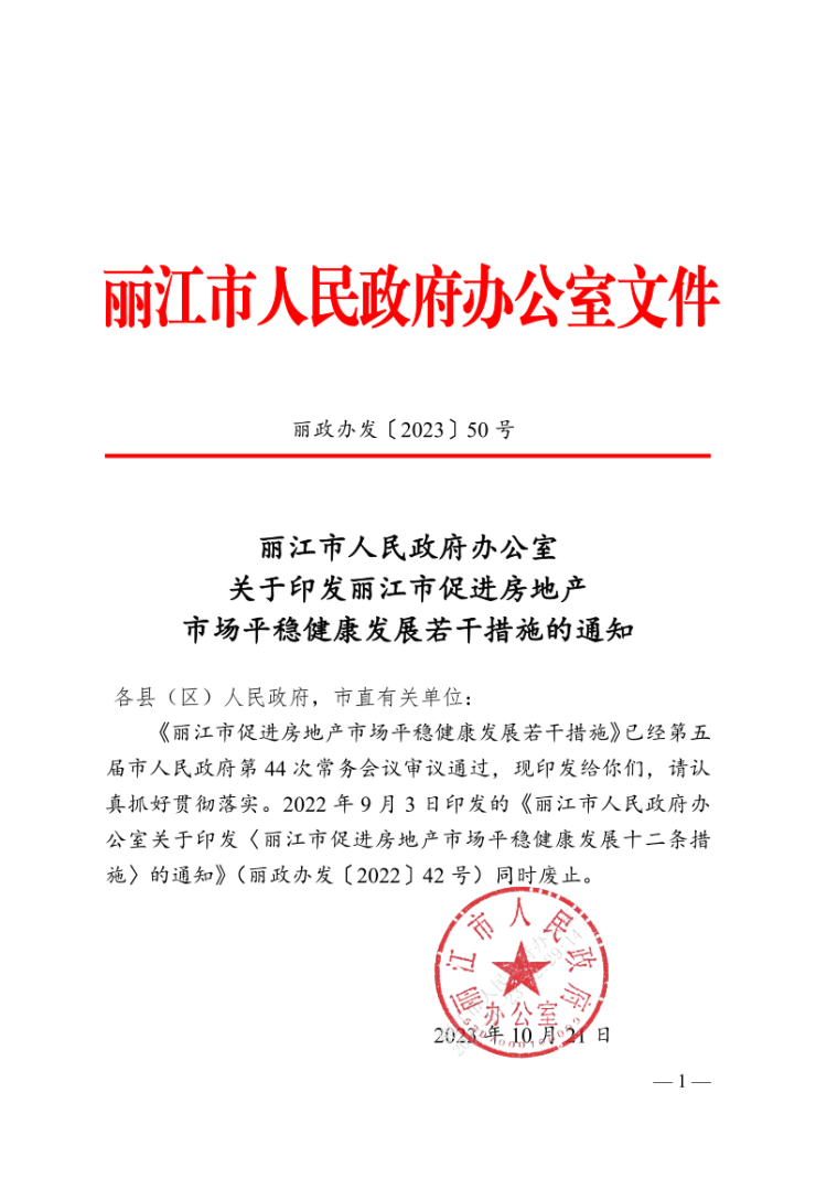 据云南省丽江市房地产物业协会10月25日消息,丽江市人民政府办公室发布《关于印发丽江市促进房地产市场平稳健康发展若干措施的通知》。